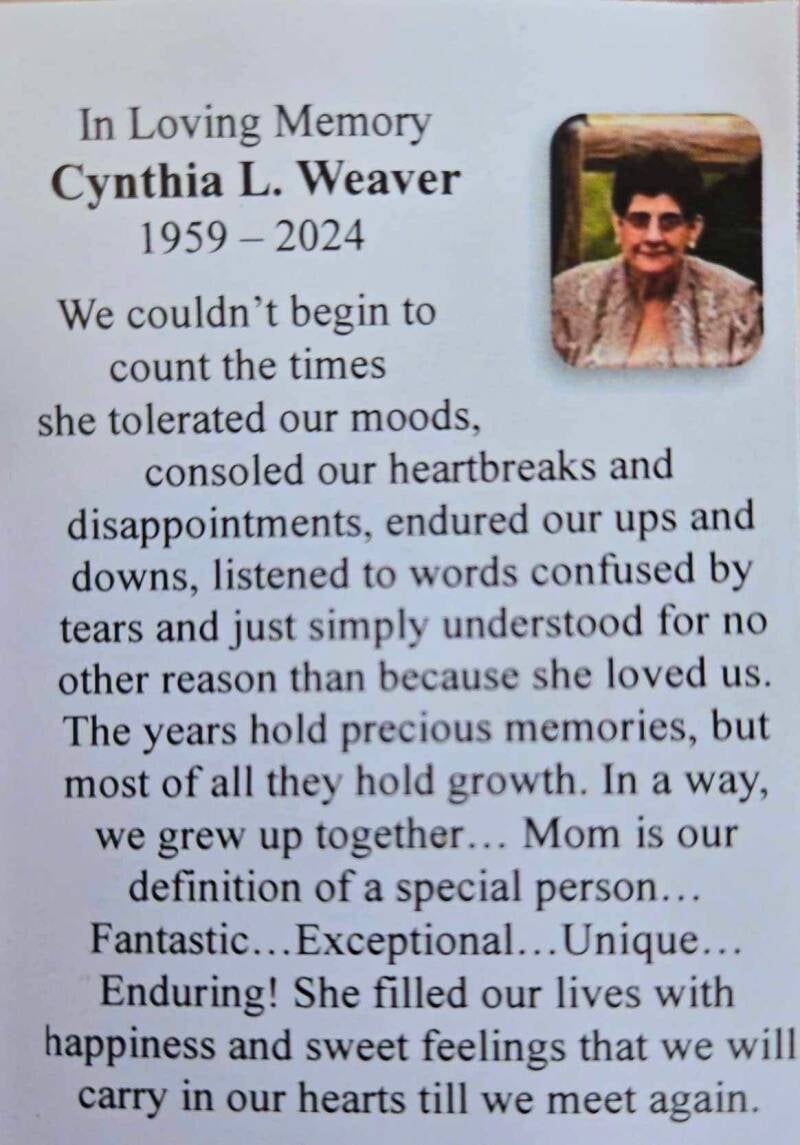 In Loving Memory of my Mom ''Cynthia Weaver'' who passed away on Wednesday November 6, 2024